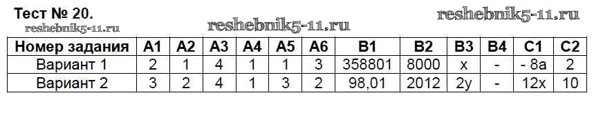 Готовая домашняя работа с ответами по Алгебре за 7 класс Мартышова Контрольно-измерительные материалы (КИМ) ВАКО 2017 ФГОС - Тесты 20