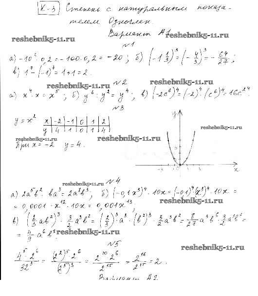 Готовая домашняя работа с ответами по Алгебре за 7 класс Ершова, Голобородько Самостоятельные и контрольные работы Илекса 2015 ФГОС - КР-3. Степень с натуральным показателем вариант А-1
