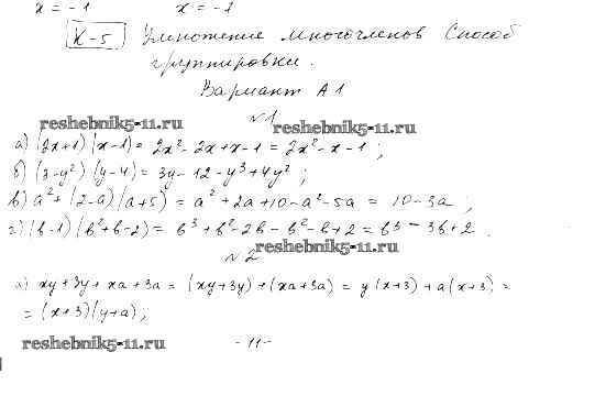 Готовая домашняя работа с ответами по Алгебре за 7 класс Ершова, Голобородько Самостоятельные и контрольные работы Илекса 2015 ФГОС - КР-5. Умножение многочленов. Способ группировки вариант А-1
