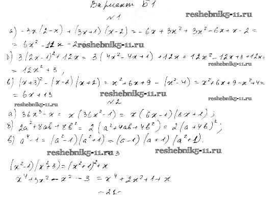 Готовая домашняя работа с ответами по Алгебре за 7 класс Ершова, Голобородько Самостоятельные и контрольные работы Илекса 2015 ФГОС - КР-6. Формулы сокращенного умножения вариант Б-1