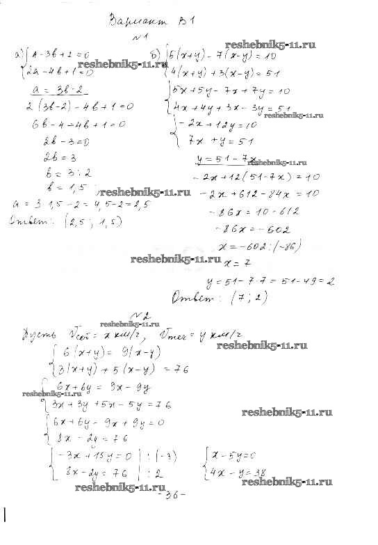 Готовая домашняя работа с ответами по Алгебре за 7 класс Ершова, Голобородько Самостоятельные и контрольные работы Илекса 2015 ФГОС - КР-7. Системы линейных уравнений с двумя переменными вариант В-1