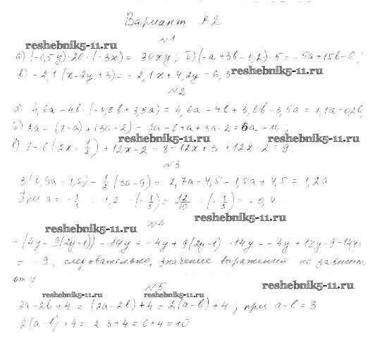 Готовая домашняя работа с ответами по Алгебре за 7 класс Ершова, Голобородько Самостоятельные и контрольные работы Илекса 2015 ФГОС - СР-1. Тождественные преобразования выражений вариант В-2