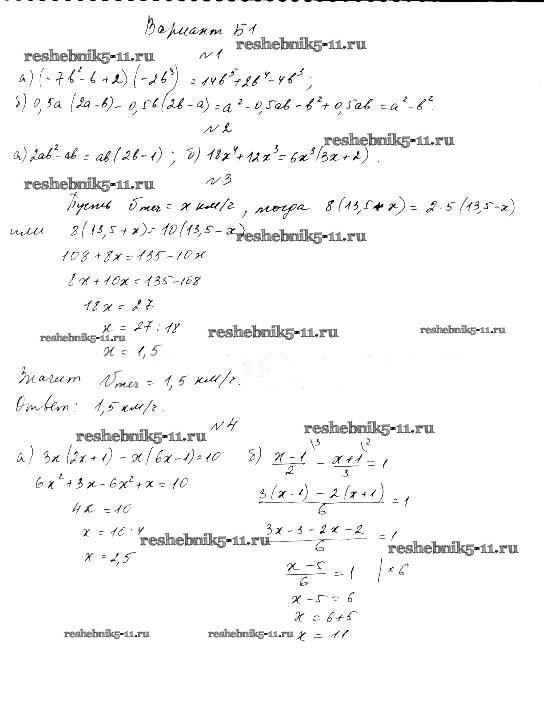 Готовая домашняя работа с ответами по Алгебре за 7 класс Ершова, Голобородько Самостоятельные и контрольные работы Илекса 2015 ФГОС - СР-11. Умножение многочлена на одночлен. Вынесение общего множителя за скобки вариант Б-1