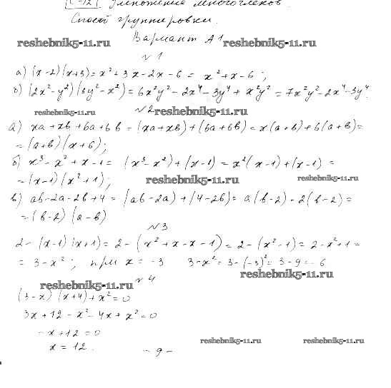 Готовая домашняя работа с ответами по Алгебре за 7 класс Ершова, Голобородько Самостоятельные и контрольные работы Илекса 2015 ФГОС - СР-12. Умножение многочленов. Способ группировки вариант А-1