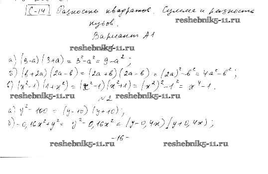 Готовая домашняя работа с ответами по Алгебре за 7 класс Ершова, Голобородько Самостоятельные и контрольные работы Илекса 2015 ФГОС - СР-14. Разность квадратов. Сумма и разность кубов вариант А-1