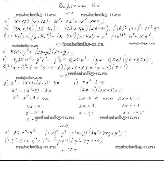 Готовая домашняя работа с ответами по Алгебре за 7 класс Ершова, Голобородько Самостоятельные и контрольные работы Илекса 2015 ФГОС - СР-14. Разность квадратов. Сумма и разность кубов вариант Б-1
