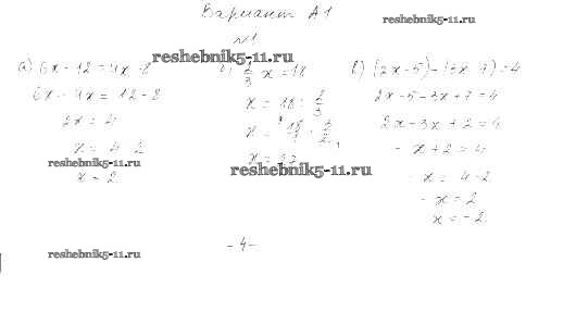 Готовая домашняя работа с ответами по Алгебре за 7 класс Ершова, Голобородько Самостоятельные и контрольные работы Илекса 2015 ФГОС - СР-2. Решение уравнений вариант А-1