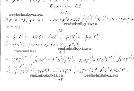 Готовая домашняя работа с ответами по Алгебре за 7 класс Ершова, Голобородько Самостоятельные и контрольные работы Илекса 2015 ФГОС - СР-8. Одночлен вариант В-1