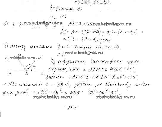 Готовая домашняя работа с ответами по Алгебре за 7 класс Ершова, Голобородько Самостоятельные и контрольные работы Илекса 2015 ФГОС - КР-1. Начальные геометрические сведения вариант А-2