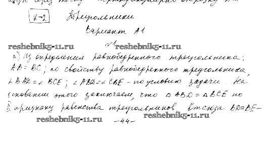 Готовая домашняя работа с ответами по Алгебре за 7 класс Ершова, Голобородько Самостоятельные и контрольные работы Илекса 2015 ФГОС - КР-2. Треугольники вариант А-1