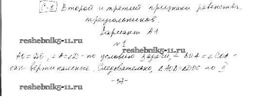 Готовая домашняя работа с ответами по Алгебре за 7 класс Ершова, Голобородько Самостоятельные и контрольные работы Илекса 2015 ФГОС - СР-8. Второй и третий признаки равенства треугольников вариант А-1
