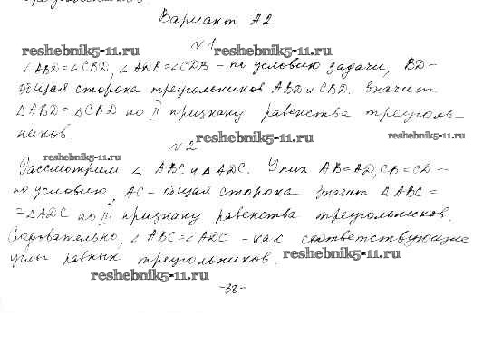 Готовая домашняя работа с ответами по Алгебре за 7 класс Ершова, Голобородько Самостоятельные и контрольные работы Илекса 2015 ФГОС - СР-8. Второй и третий признаки равенства треугольников вариант А-2