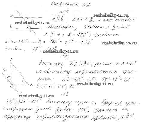 Готовая домашняя работа с ответами по Алгебре за 7 класс Ершова, Голобородько Самостоятельные и контрольные работы Илекса 2015 ФГОС - СР-11. Свойства параллельных прямых вариант А-2