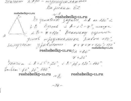 Готовая домашняя работа с ответами по Алгебре за 7 класс Ершова, Голобородько Самостоятельные и контрольные работы Илекса 2015 ФГОС - СР-12. Сумма углов треугольника вариант Б-2