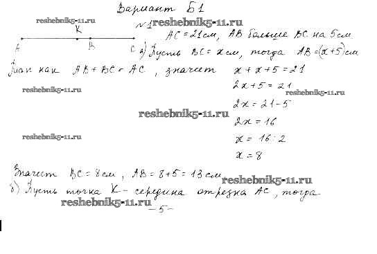 Готовая домашняя работа с ответами по Алгебре за 7 класс Ершова, Голобородько Самостоятельные и контрольные работы Илекса 2015 ФГОС - СР-2. Сравнение и измерение отрезков вариант Б-1