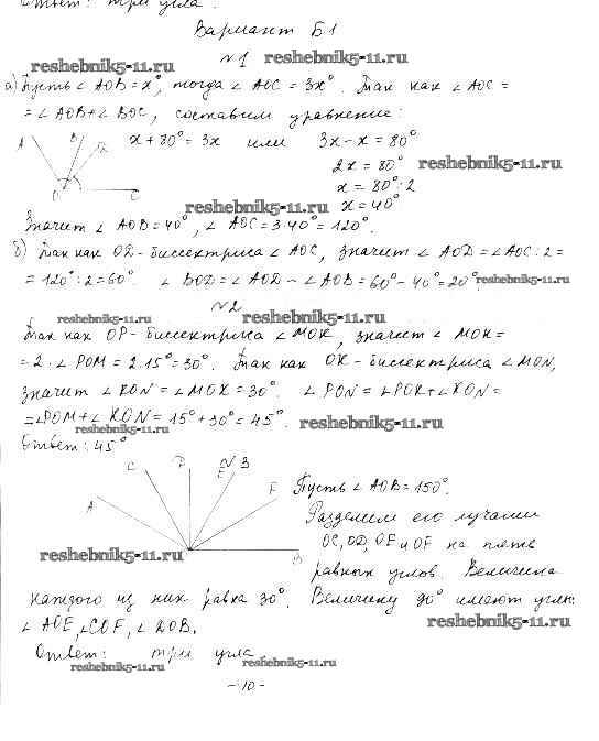 Готовая домашняя работа с ответами по Алгебре за 7 класс Ершова, Голобородько Самостоятельные и контрольные работы Илекса 2015 ФГОС - СР-3. Сравнение и измерение углов вариант Б-1