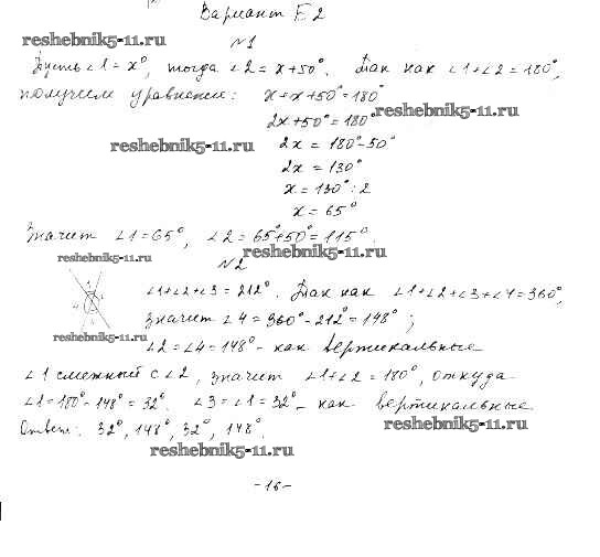 Готовая домашняя работа с ответами по Алгебре за 7 класс Ершова, Голобородько Самостоятельные и контрольные работы Илекса 2015 ФГОС - СР-4. Смежные и вертикальные углы вариант Б-2