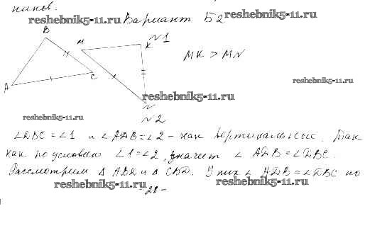 КР-3. Три признака равенства треугольников
