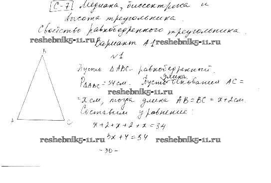 Готовая домашняя работа с ответами по Алгебре за 7 класс Ершова, Голобородько Самостоятельные и контрольные работы Илекса 2015 ФГОС - СР-7. Медиана, биссектриса и высота треугольника вариант А-1