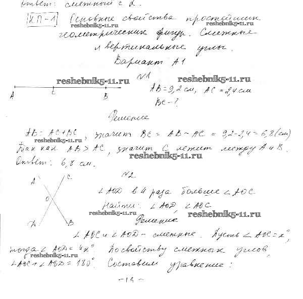 Готовая домашняя работа с ответами по Алгебре за 7 класс Ершова, Голобородько Самостоятельные и контрольные работы Илекса 2015 ФГОС - КП-1. Основные свойства простейших геометрических фигур вариант А-1