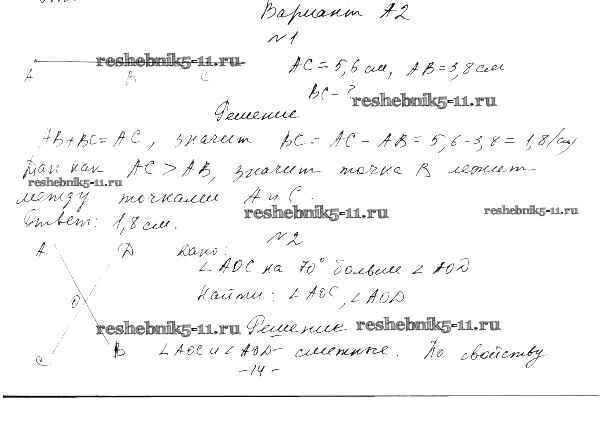 Готовая домашняя работа с ответами по Алгебре за 7 класс Ершова, Голобородько Самостоятельные и контрольные работы Илекса 2015 ФГОС - КП-1. Основные свойства простейших геометрических фигур вариант А-2