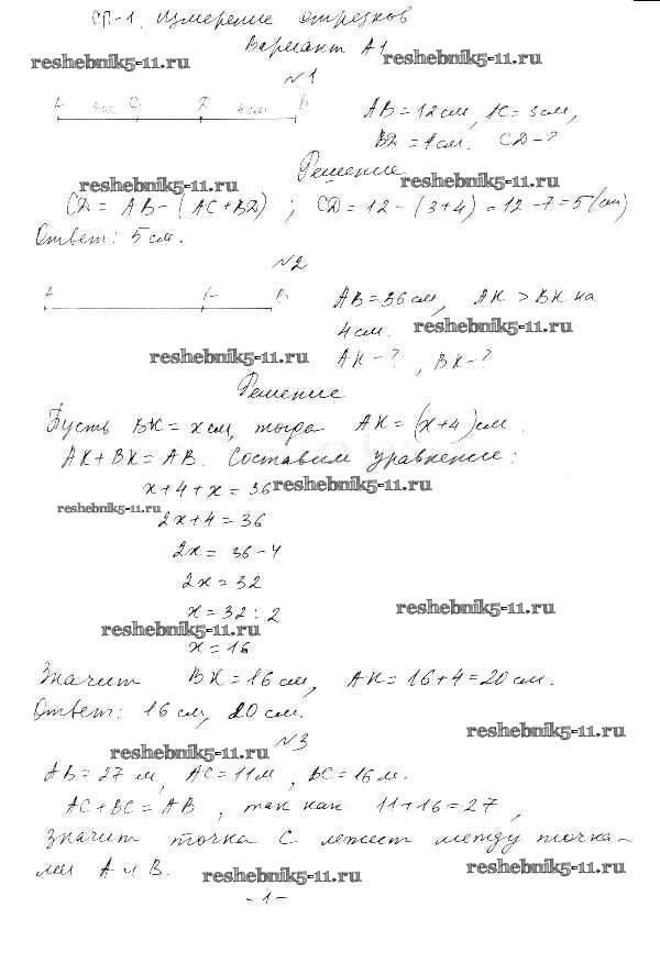Готовая домашняя работа с ответами по Алгебре за 7 класс Ершова, Голобородько Самостоятельные и контрольные работы Илекса 2015 ФГОС - СП-1. Измерение отрезков вариант А-1