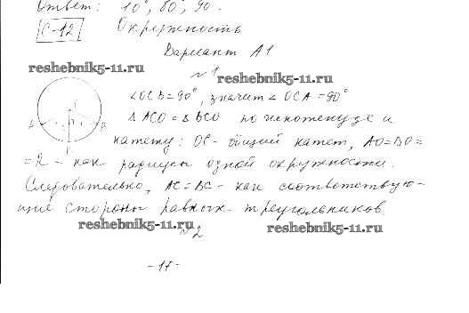 Готовая домашняя работа с ответами по Алгебре за 7 класс Ершова, Голобородько Самостоятельные и контрольные работы Илекса 2015 ФГОС - СР-12. Окружность вариант А-1