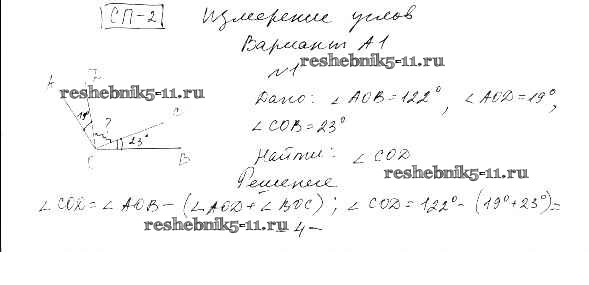 Готовая домашняя работа с ответами по Алгебре за 7 класс Ершова, Голобородько Самостоятельные и контрольные работы Илекса 2015 ФГОС - СП-2. Измерение углов вариант А-1