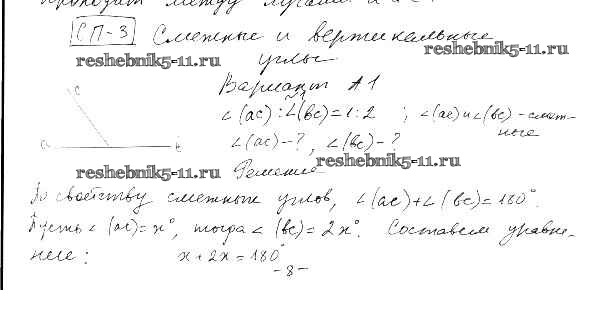 Готовая домашняя работа с ответами по Алгебре за 7 класс Ершова, Голобородько Самостоятельные и контрольные работы Илекса 2015 ФГОС - СП-3. Смежные и вертикальные углы вариант А-1