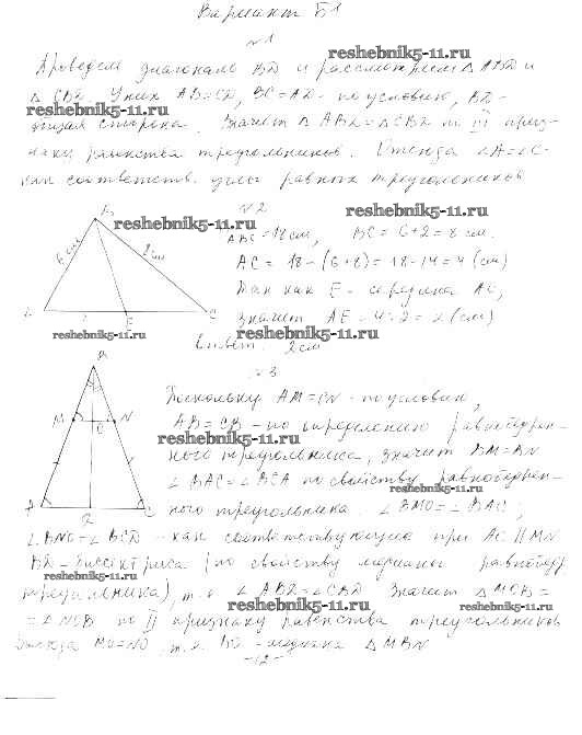 Готовая домашняя работа с ответами по Алгебре за 7 класс Ершова, Голобородько Самостоятельные и контрольные работы Илекса 2015 ФГОС - СР-7. Третий признак равенства треугольника вариант Б-1