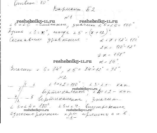 Готовая домашняя работа с ответами по Алгебре за 7 класс Ершова, Голобородько Самостоятельные и контрольные работы Илекса 2015 ФГОС - СР-8. Параллельные прямые вариант Б-2