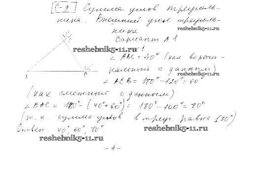 Готовая домашняя работа с ответами по Алгебре за 7 класс Ершова, Голобородько Самостоятельные и контрольные работы Илекса 2015 ФГОС - СР-9. Сумма углов треугольника вариант А-1