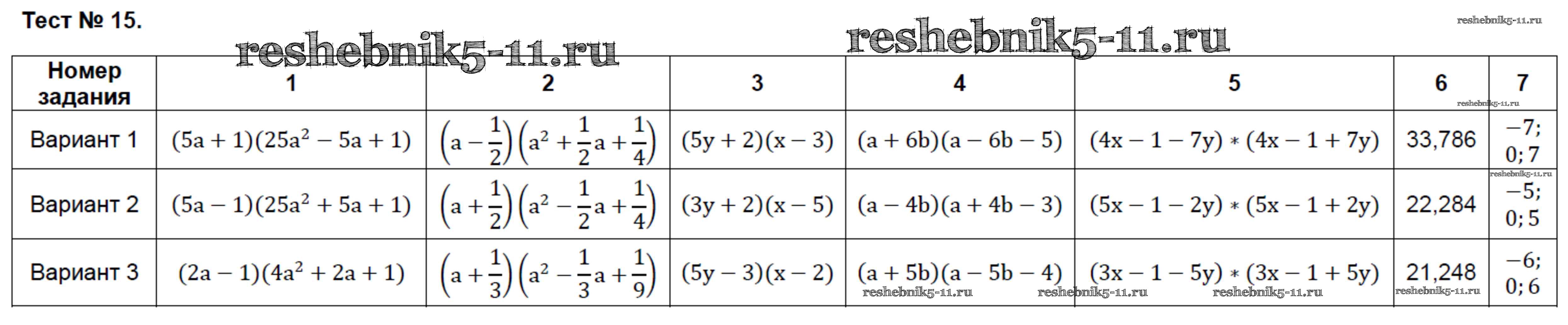 Готовая домашняя работа с ответами по Алгебре за 7 класс Глазков, Гаиашвили Контрольно-измерительные материалы (КИМ) Экзамен 2014 ФГОС - Тесты 15