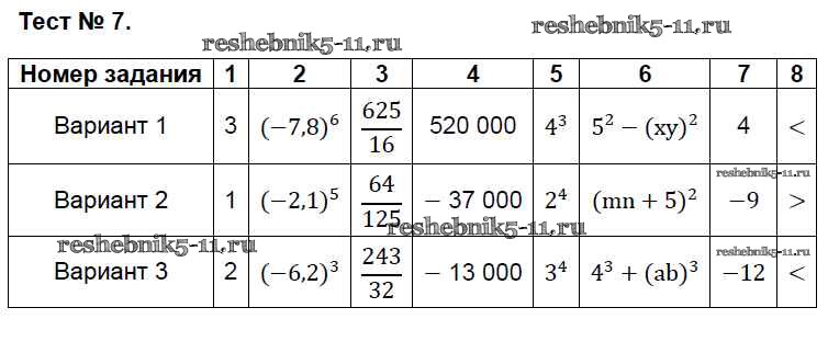 Готовая домашняя работа с ответами по Алгебре за 7 класс Глазков, Гаиашвили Контрольно-измерительные материалы (КИМ) Экзамен 2014 ФГОС - Тесты 7