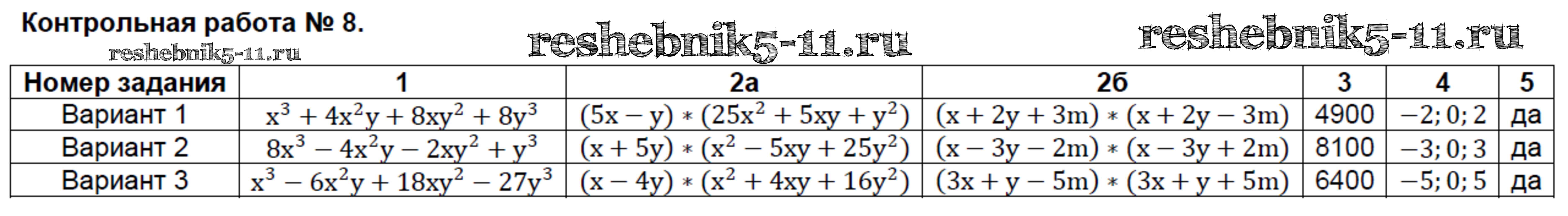 Готовая домашняя работа с ответами по Алгебре за 7 класс Глазков, Гаиашвили Контрольно-измерительные материалы (КИМ) Экзамен 2014 ФГОС - Контрольные работы 8