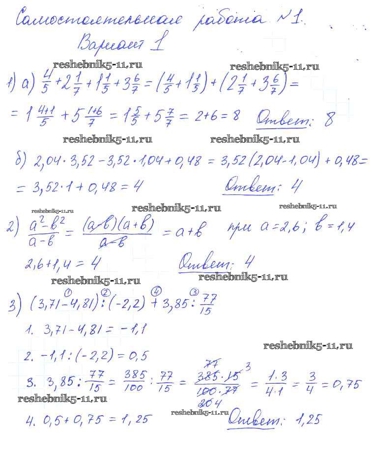 Готовая домашняя работа с ответами по Алгебре за 7 класс Попов Контрольные и самостоятельные работы УМК Экзамен 2017 ФГОС - СР-1 1