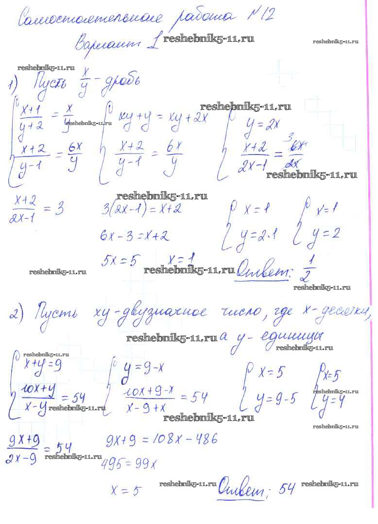 Решебник / самостоятельная работа. вариант / ср-12 / 1
