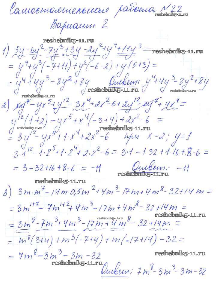 Готовая домашняя работа с ответами по Алгебре за 7 класс Попов Контрольные и самостоятельные работы УМК Экзамен 2017 ФГОС - СР-22 2