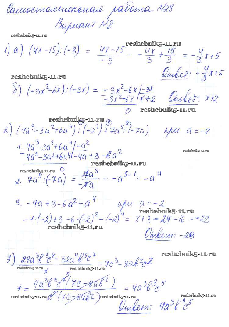 Готовая домашняя работа с ответами по Алгебре за 7 класс Попов Контрольные и самостоятельные работы УМК Экзамен 2017 ФГОС - СР-28 2