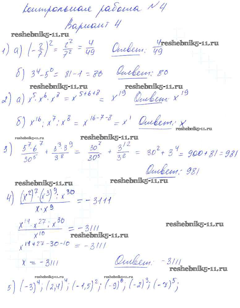 Готовая домашняя работа с ответами по Алгебре за 7 класс Попов Контрольные и самостоятельные работы УМК Экзамен 2017 ФГОС - КР-4 4