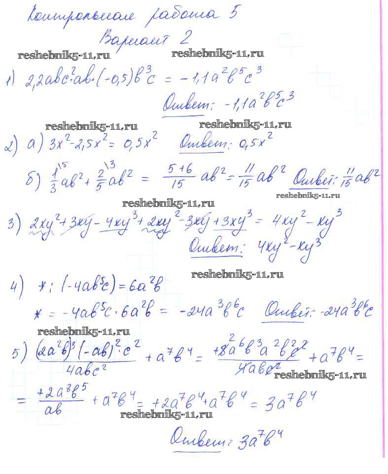 Готовая домашняя работа с ответами по Алгебре за 7 класс Попов Контрольные и самостоятельные работы УМК Экзамен 2017 ФГОС - КР-5 2