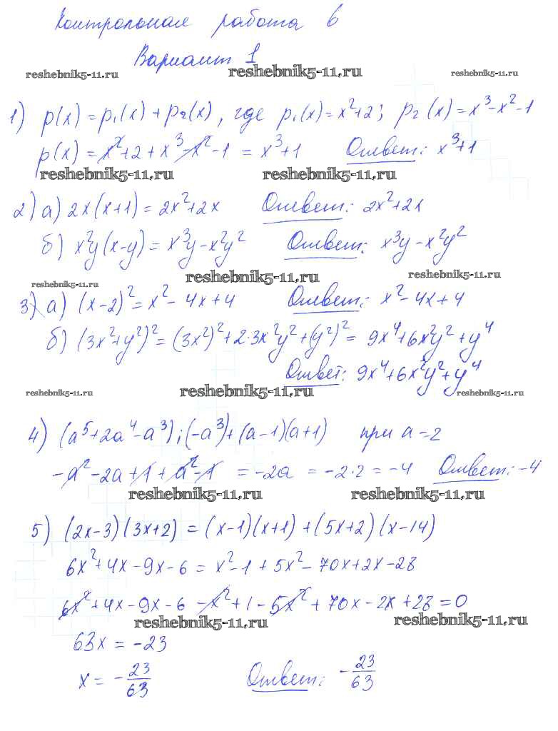 Готовая домашняя работа с ответами по Алгебре за 7 класс Попов Контрольные и самостоятельные работы УМК Экзамен 2017 ФГОС - КР-6 1