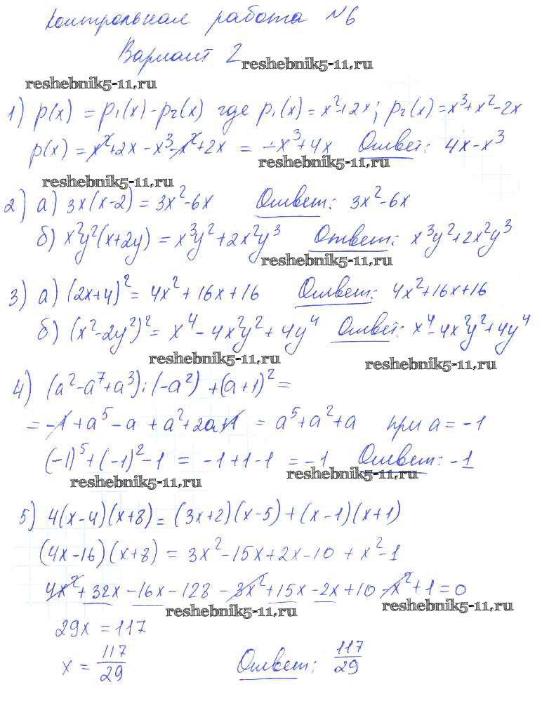 Готовая домашняя работа с ответами по Алгебре за 7 класс Попов Контрольные и самостоятельные работы УМК Экзамен 2017 ФГОС - КР-6 2
