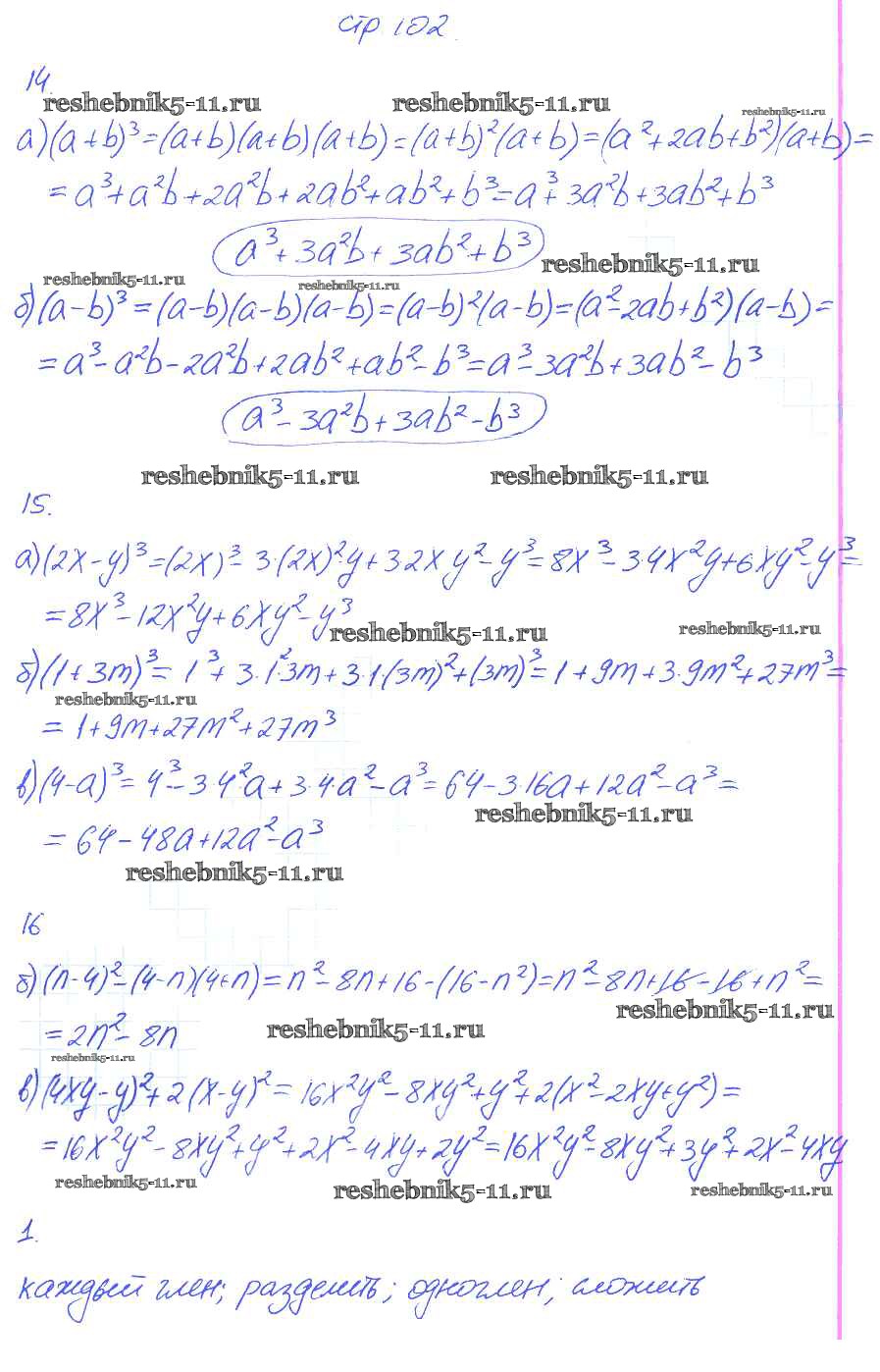 Готовая домашняя работа с ответами по Алгебре за 7 класс Ключникова, Комиссарова Рабочая тетрадь УМК Экзамен 2013 ФГОС - Страницы 102