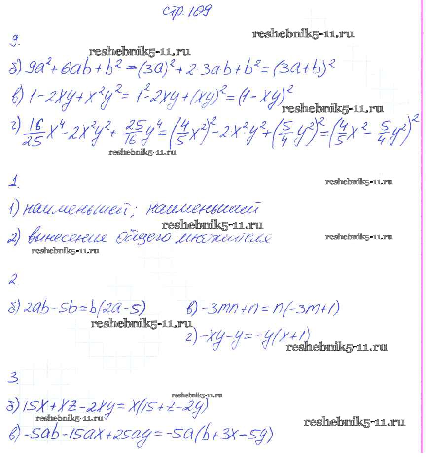 Готовая домашняя работа с ответами по Алгебре за 7 класс Ключникова, Комиссарова Рабочая тетрадь УМК Экзамен 2013 ФГОС - Страницы 109