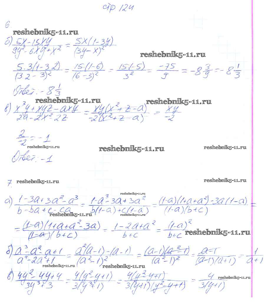 Готовая домашняя работа с ответами по Алгебре за 7 класс Ключникова, Комиссарова Рабочая тетрадь УМК Экзамен 2013 ФГОС - Страницы 124