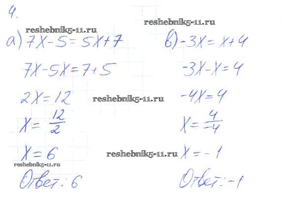 Готовая домашняя работа с ответами по Алгебре за 7 класс Ключникова, Комиссарова Рабочая тетрадь УМК Экзамен 2013 ФГОС - §4. Линейное уравнение с одной переменной 4