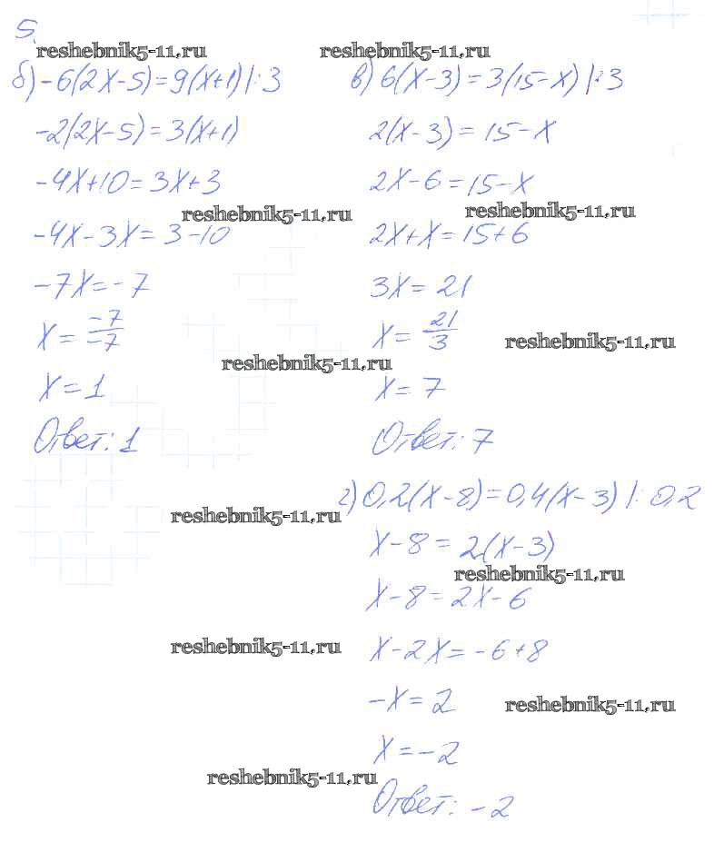 Готовая домашняя работа с ответами по Алгебре за 7 класс Ключникова, Комиссарова Рабочая тетрадь УМК Экзамен 2013 ФГОС - §4. Линейное уравнение с одной переменной 5