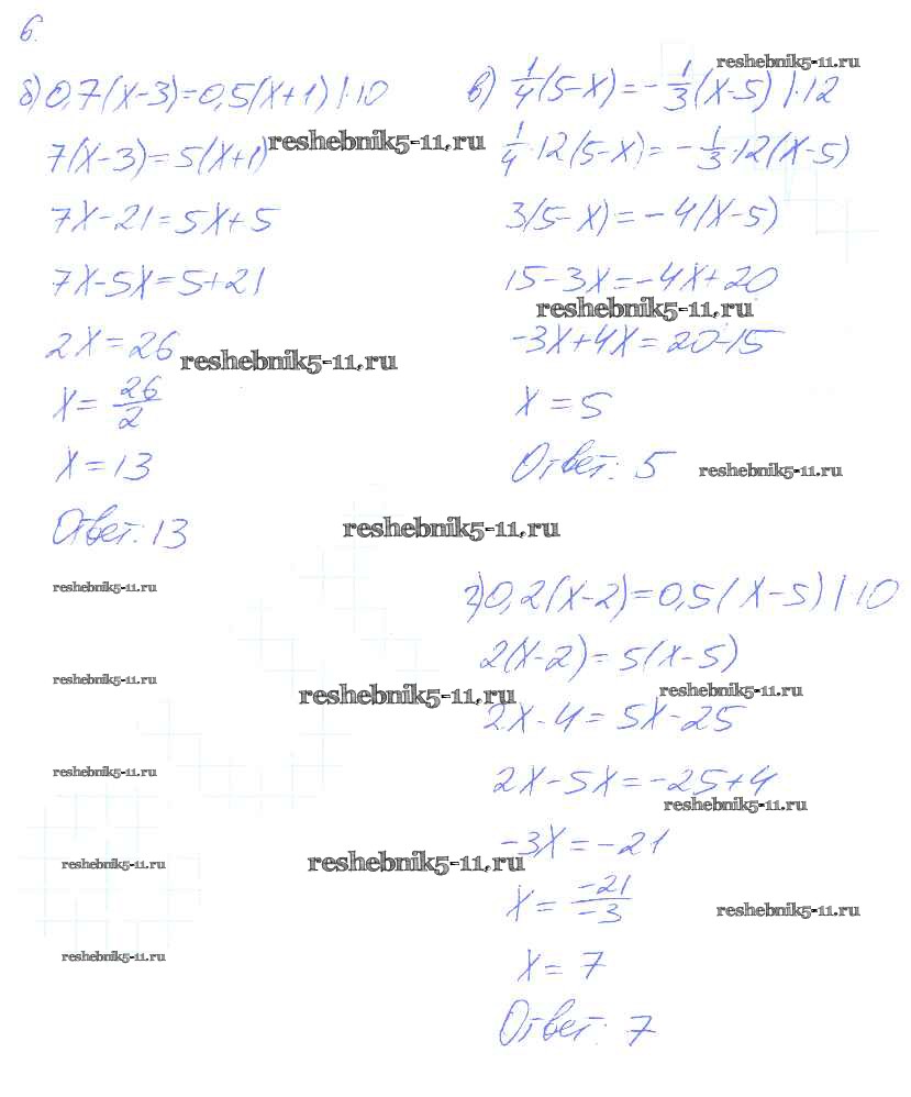 Готовая домашняя работа с ответами по Алгебре за 7 класс Ключникова, Комиссарова Рабочая тетрадь УМК Экзамен 2013 ФГОС - §4. Линейное уравнение с одной переменной 6