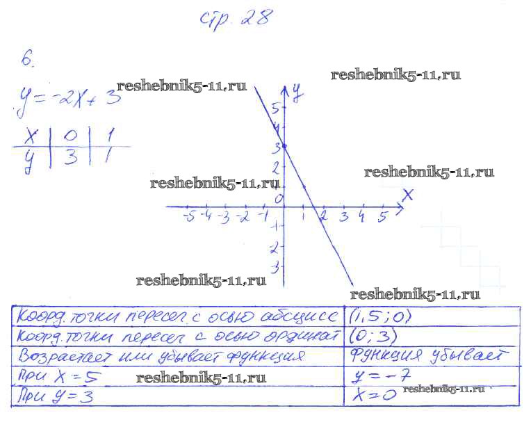 Готовая домашняя работа с ответами по Алгебре за 7 класс Ключникова, Комиссарова Рабочая тетрадь УМК Экзамен 2013 ФГОС - §8. Линейная функция и её график 6